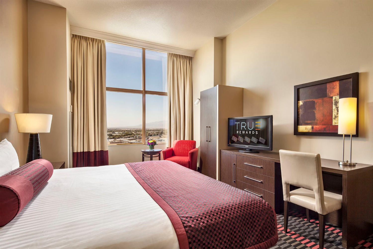 The Select King is 320 square feet and includes one king bed. Rooms feature a 42-inch TV, MP3 player and in-room safe. For those who need to work while they play, the room includes a designated work area with desk. Rest and feel revived before taking on Vegas for yet another day.